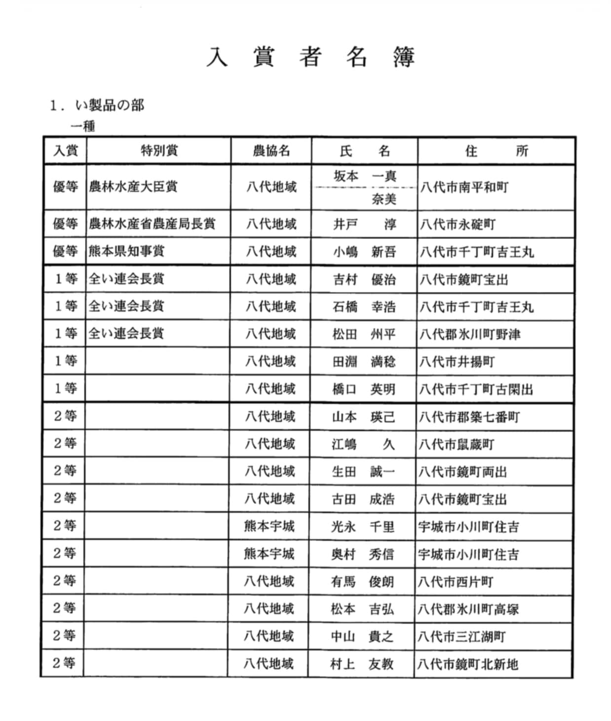 1等/全い連会長賞 吉村 優治さん