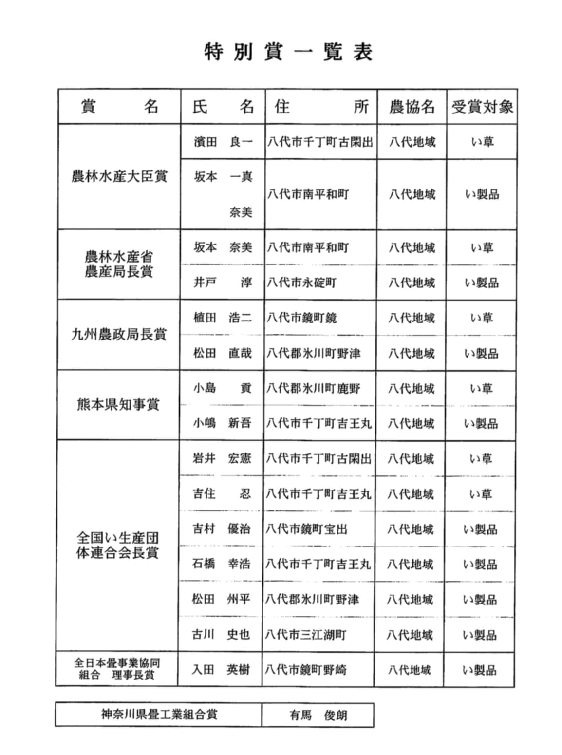 まさに“その年を代表する畳表”が一堂に会する貴重な機会です。